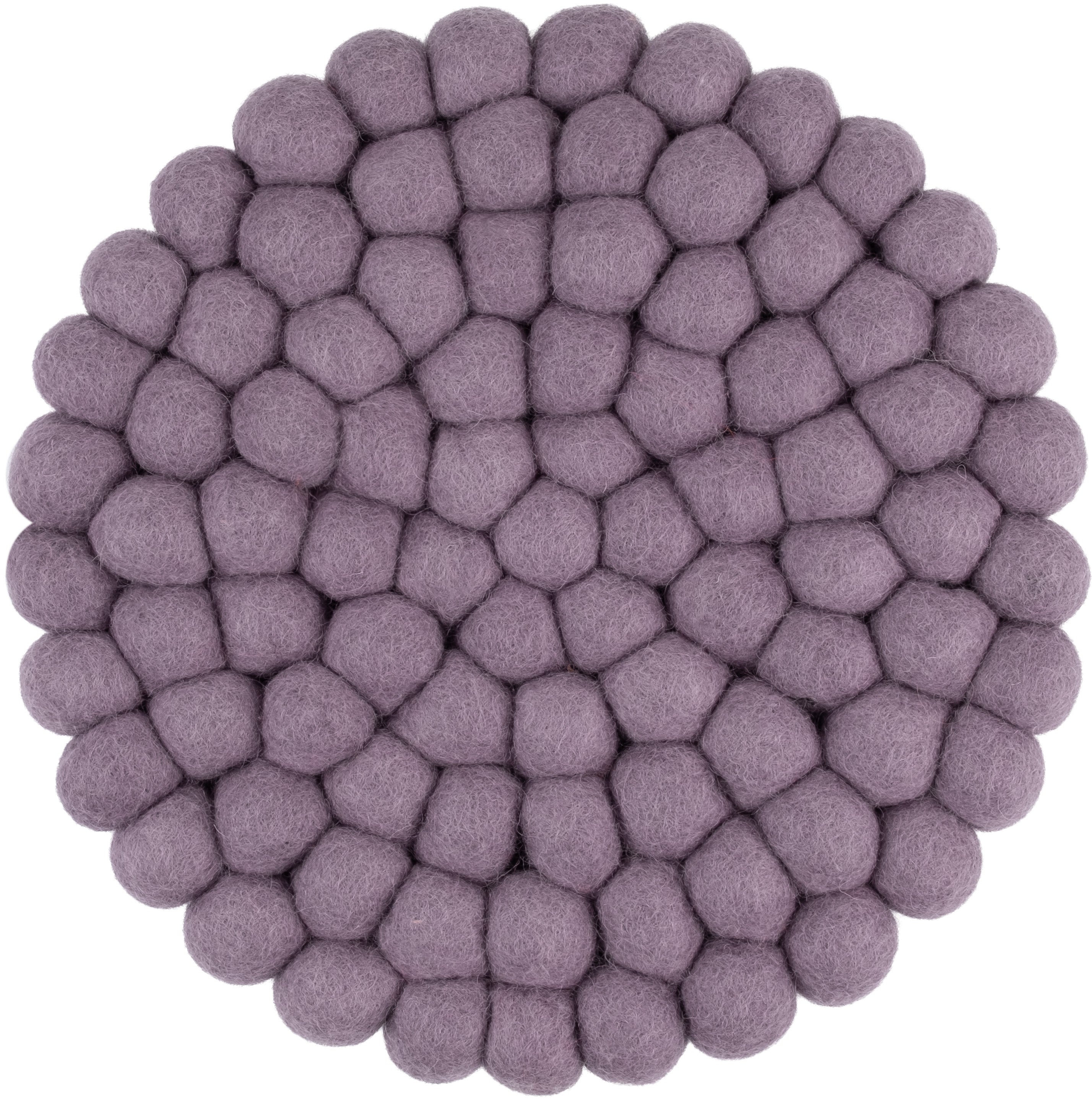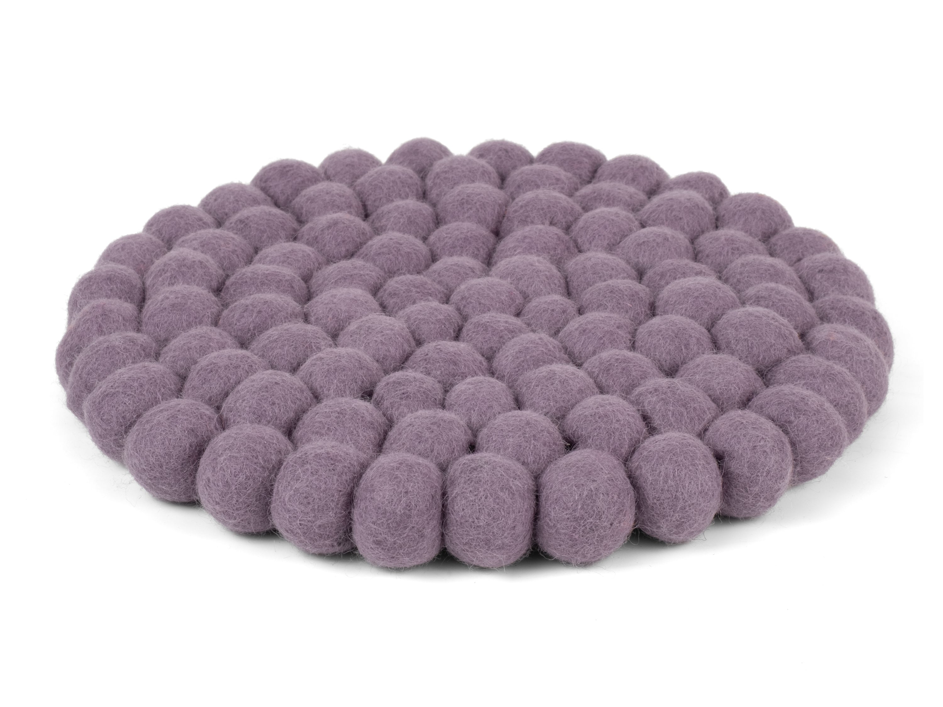 Runder, fliedergrauer Topfuntersetzer aus reiner Schurwolle