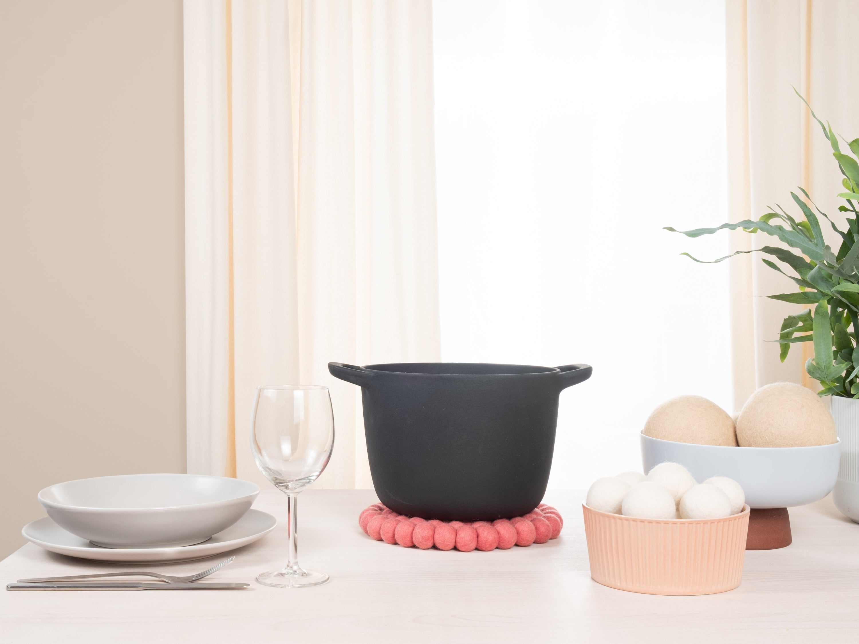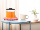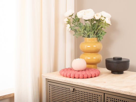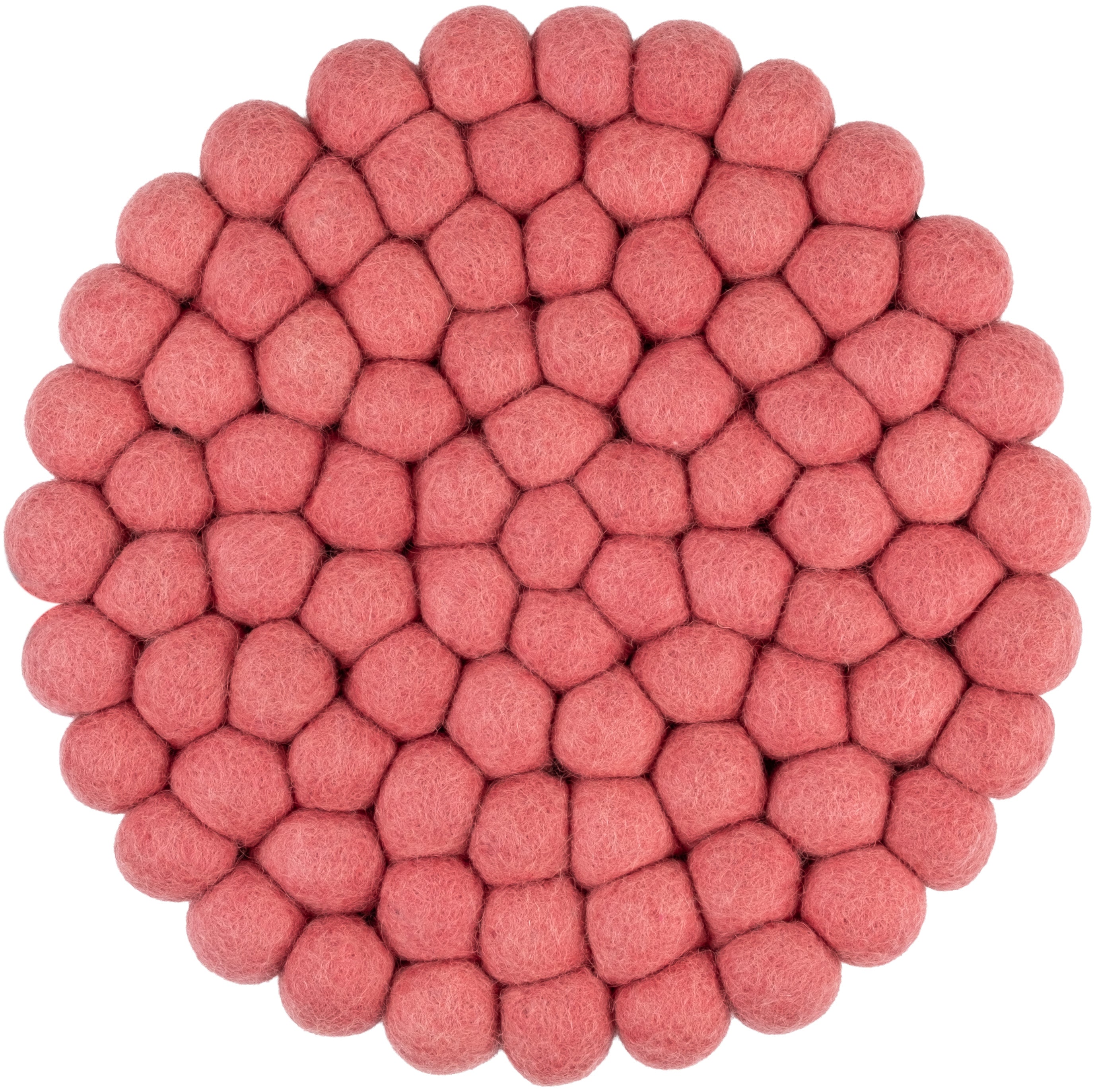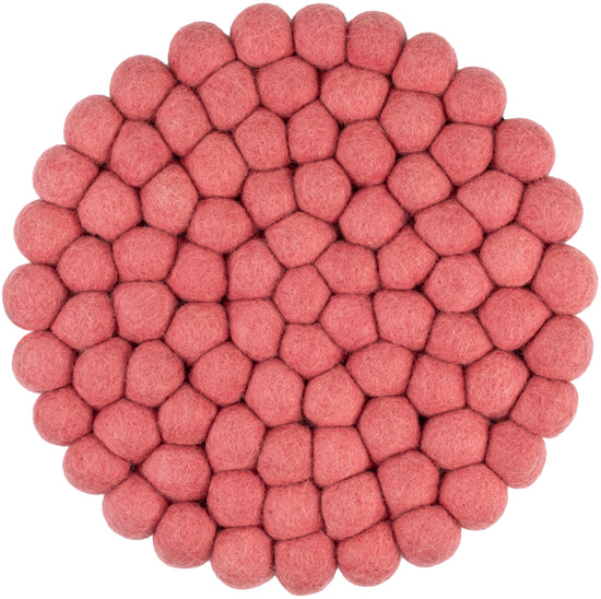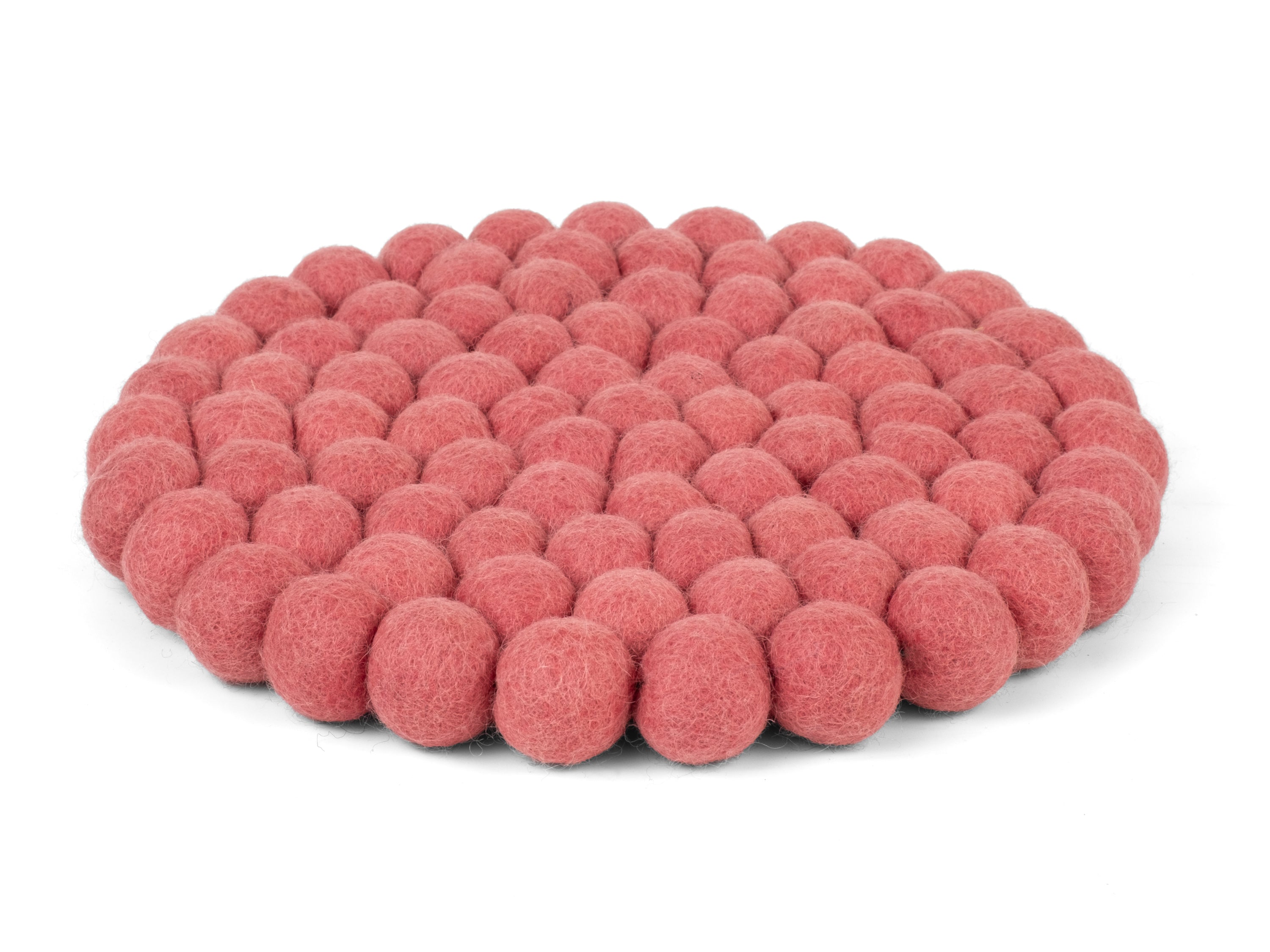 Runder, korallenrosafarbener Topfuntersetzer aus reiner Schurwolle